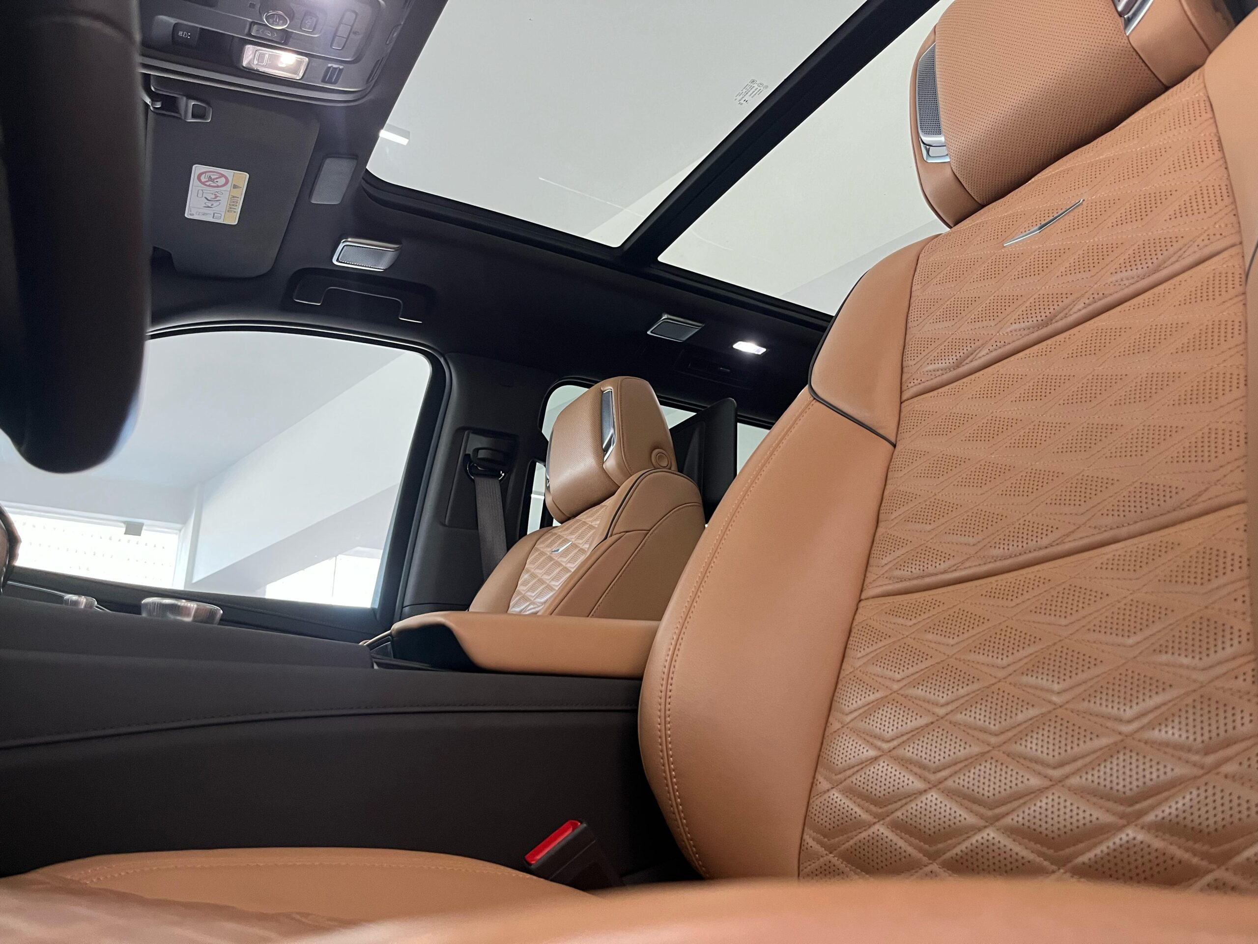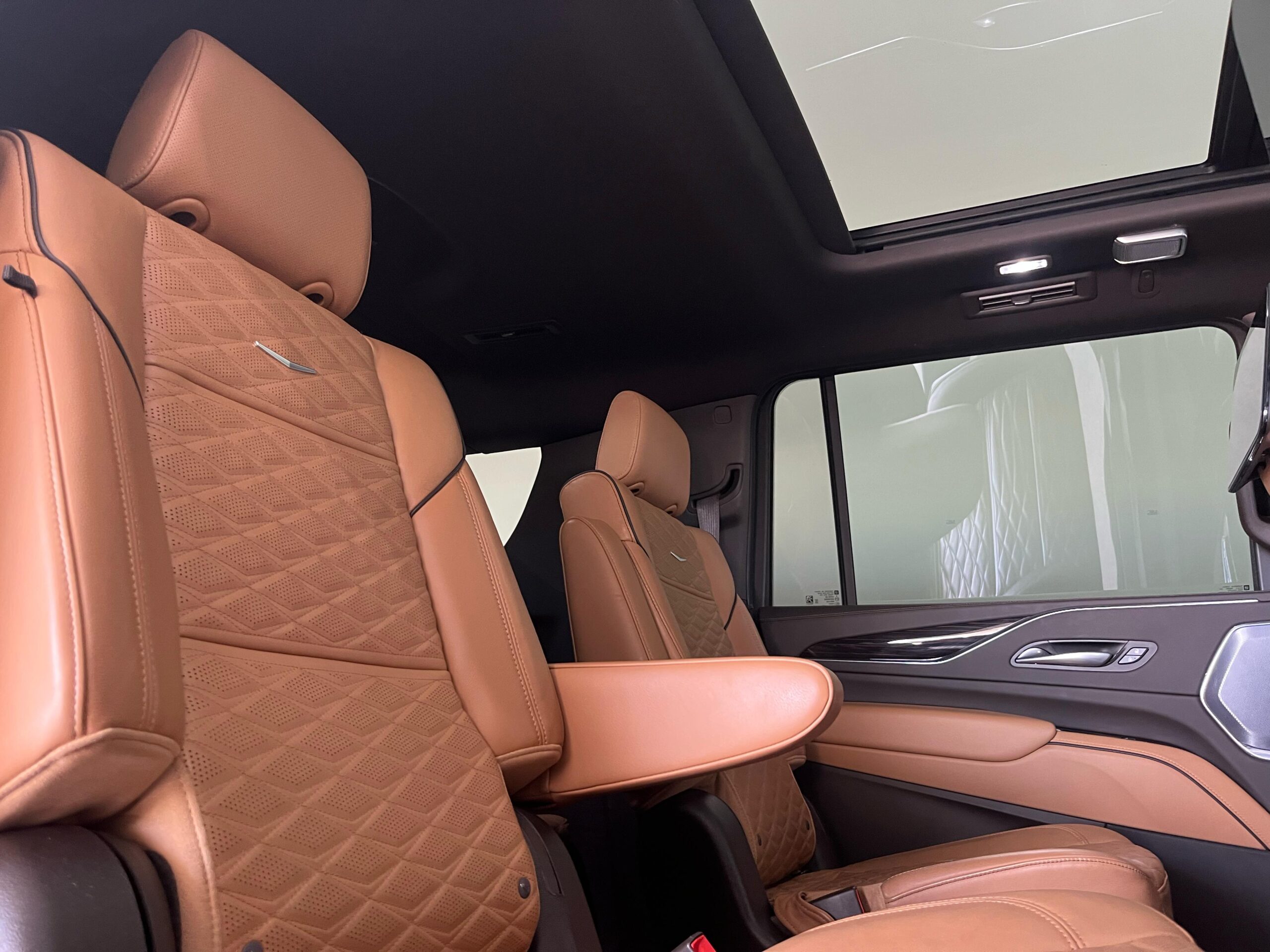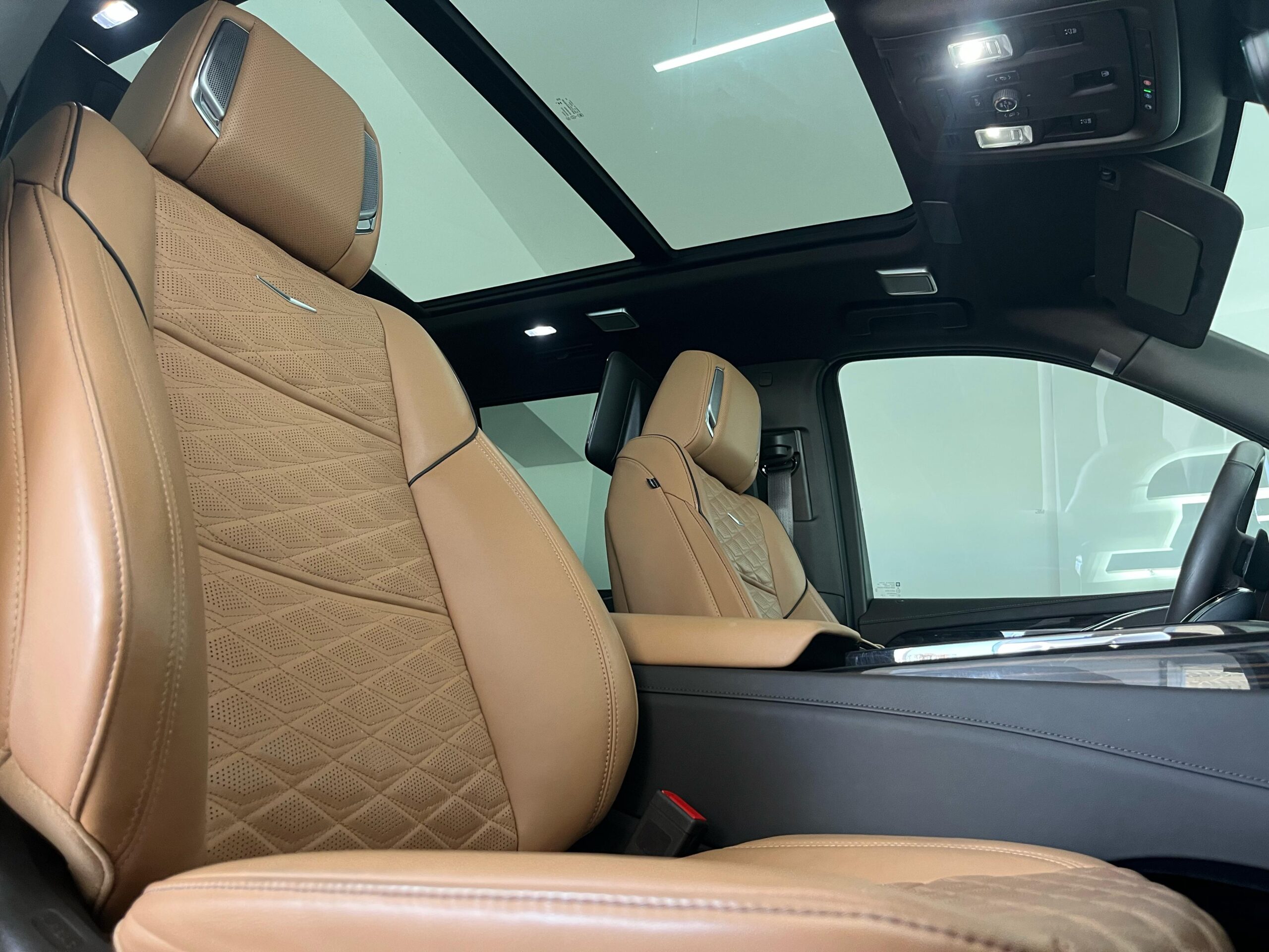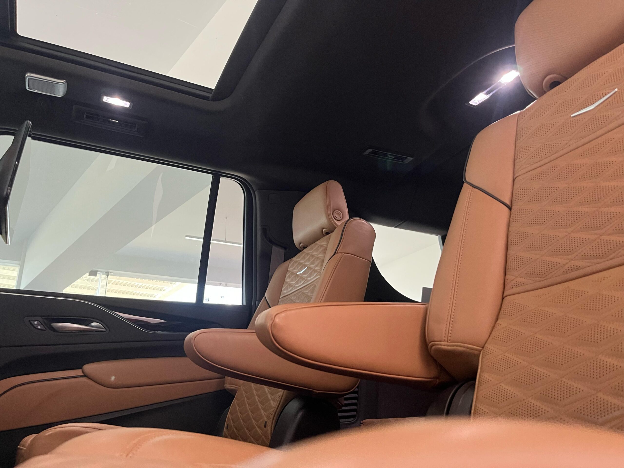 El interior del Escalade 2023 es lujoso y altamente tecnológico. Está diseñado con materiales premium como cuero de alta calidad, maderas finas y detalles metálicos. El espacio interior es amplio, con capacidad para hasta 7 pasajeros, dependiendo de la configuración de los asientos. Los asientos son de ajuste eléctrico y calefaccionados, con opciones de ventilación y masaje, garantizando una experiencia de confort de primer nivel.